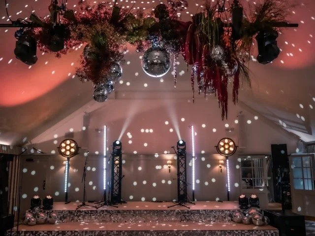 Bespoke lighting designs, stages and DJ booths at Kin House, Wiltshire.