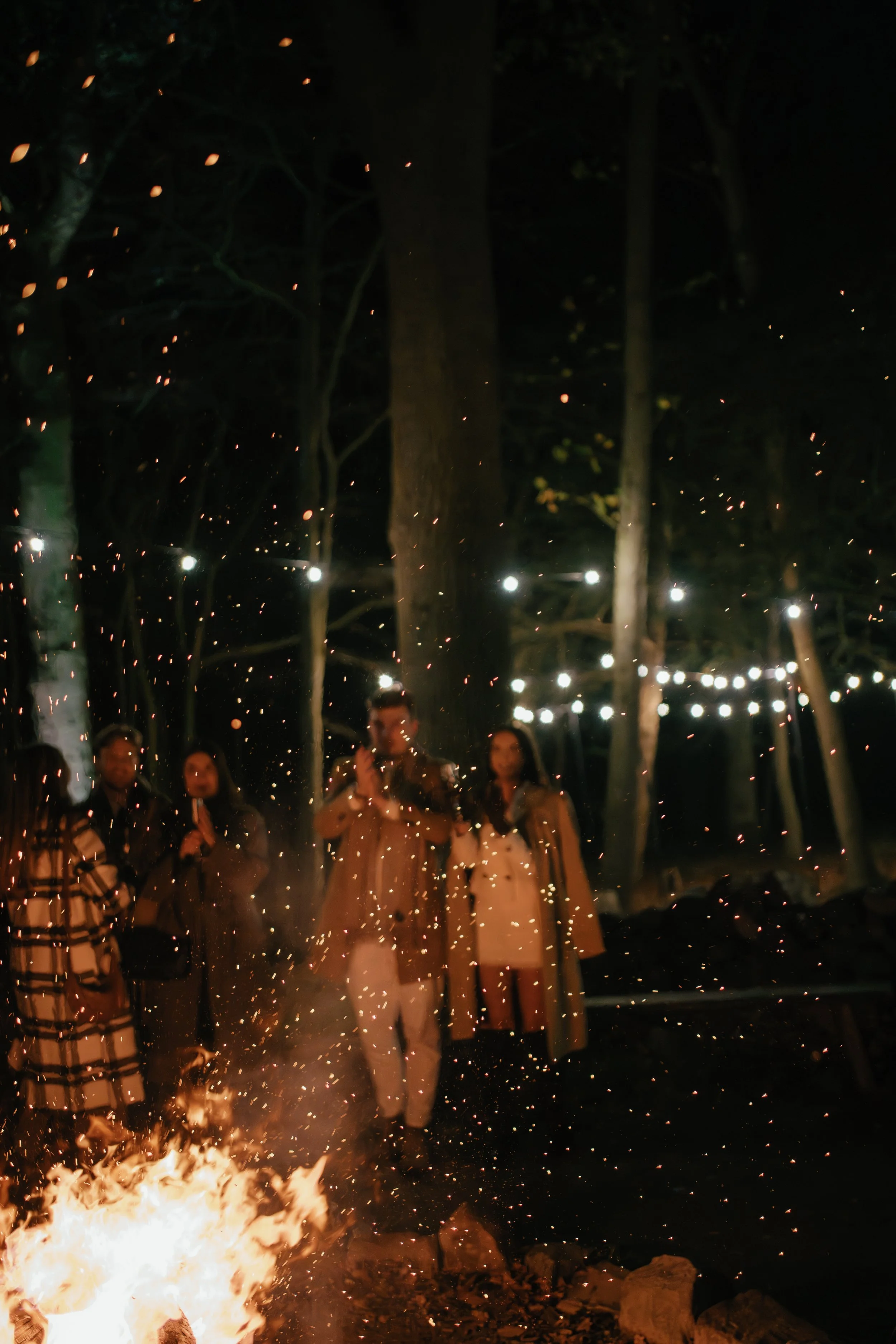 Refined outdoor lighting to enhance a fire feast at Wilderness Reserve.